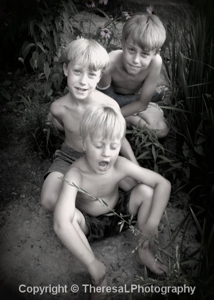 3 boys bare chested vertical 2013 BW