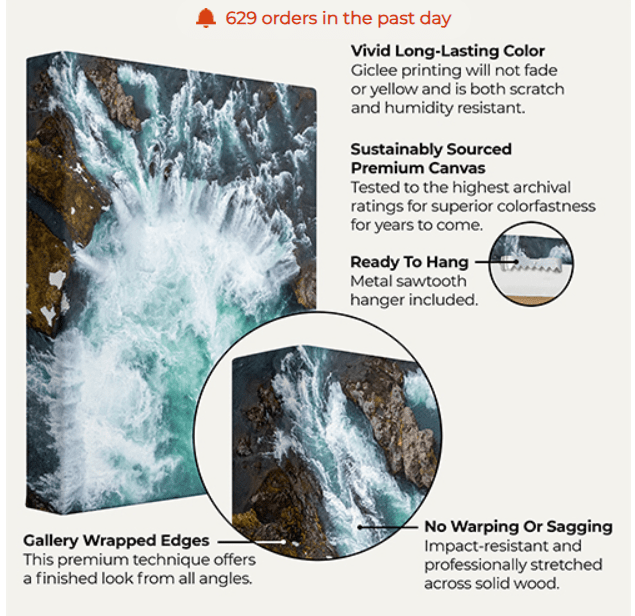 - Gallery-Wrapped Edges: This premium technique offers a finished look from all angles