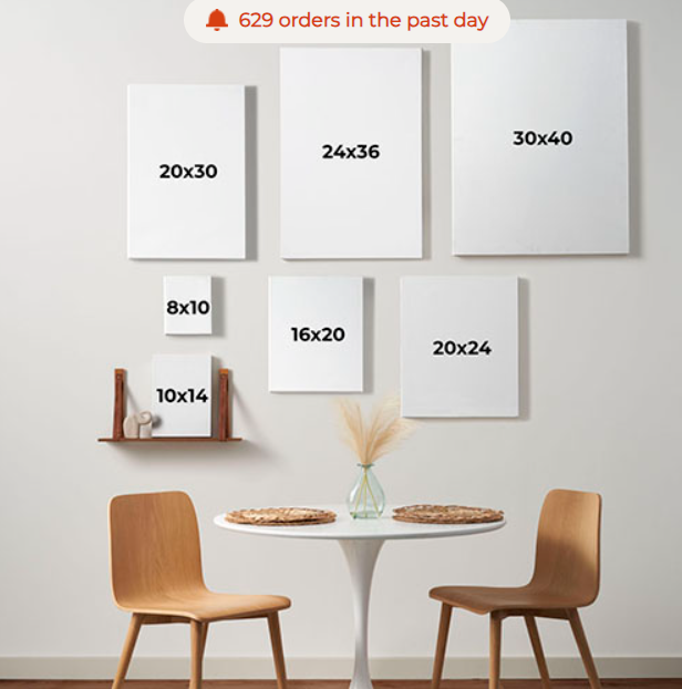 - Canvas prints have a matte finish, except 30×40 & 36×36 which have a satin finish